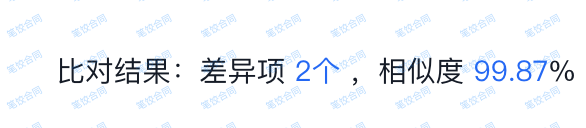 ④相似度监测:笔饺合同不仅能够识别出文档之间的差异,还能对文档的相似度进行监测。这为用户提供了一个直观的判断工具,通过计算两份文档的相似度,快速识别出它们之间的相似性和差异性。